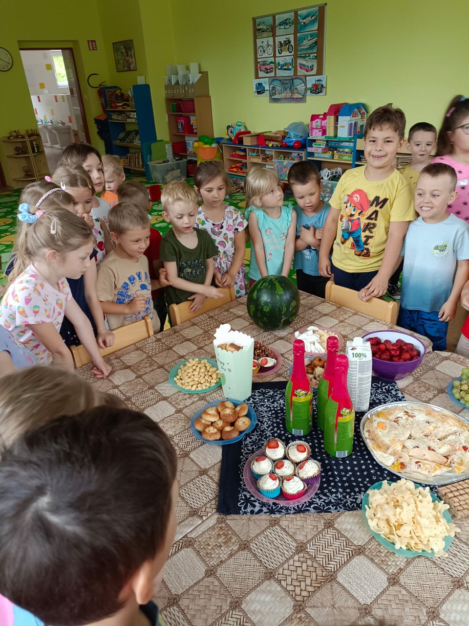 A proč ho neoslavit hned dvakrát? Zvláště pak, když 1. červen vychází zrovna na sobotu! Jelikož venku bylo poněkud deštivo a blátivo, odehrávaly se oslavy uvnitř MŠ. V pátek se sportovní a dovednostní soutěže střídaly s diskotékou, pohádkovým kvízem a rautíkem se zmrzlinkou, který dětem připravili šikovní rodiče. A je třeba podotknout, že opravdu stál za to! V pondělí se děti podílely na přípravě svačinky – voňavých palačinek s melounem, vydaly se na cestu za pokladem (našly ho!) a oslavy byly zakončeny mohutným douškem dětského šampáňa! Děti si své oslavy náležitě užily a spokojeně se vracely do svých domovů.