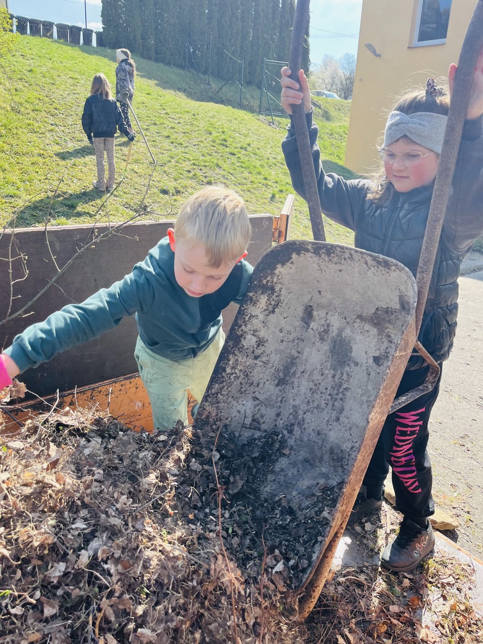 Akce uspořádaná v rámci projektu Ukliďme Česko. Děti si dnes přinesly ochranné pracovní pomůcky a „nafasovaly“ lopaty, smetáky, kloečka a hrábě. Všichni společně jsme se dali do úklidu prostor školní zahrady, kde si děti rády hrají. Tato společná aktivita vede k environmentální odpovědnosti, týmové spolupráci a taky zlepšuje prostředí.