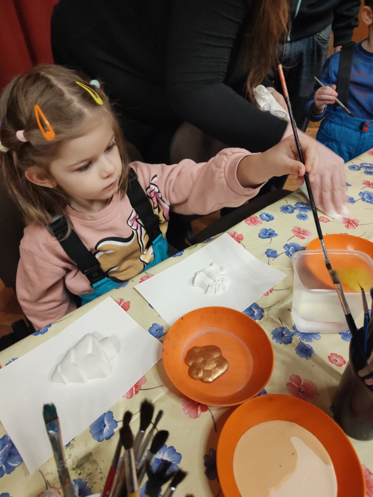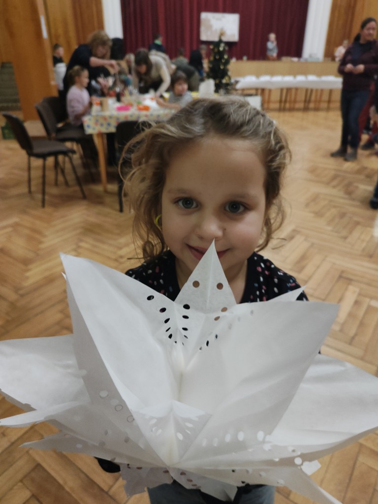 SRPŠ připravilo občerstvení a tak jsme mohli za zvuku koled začít tvořit. Připravili jsme celkem čtyři stanoviště, kde si děti mohly postupně vyrobit velkou plastickou hvězdu z papíru, voňavou svíčku ze včelího vosku, vánoční svícen na čajovou svíčku nebo mohli malovat na sádrové odlitky s vánočními motivy. Společně jsme strávili krásné odpoledne plné smíchu, tvořivých dětí i jejich rodičů, provoněné doma upečenými perníčky.