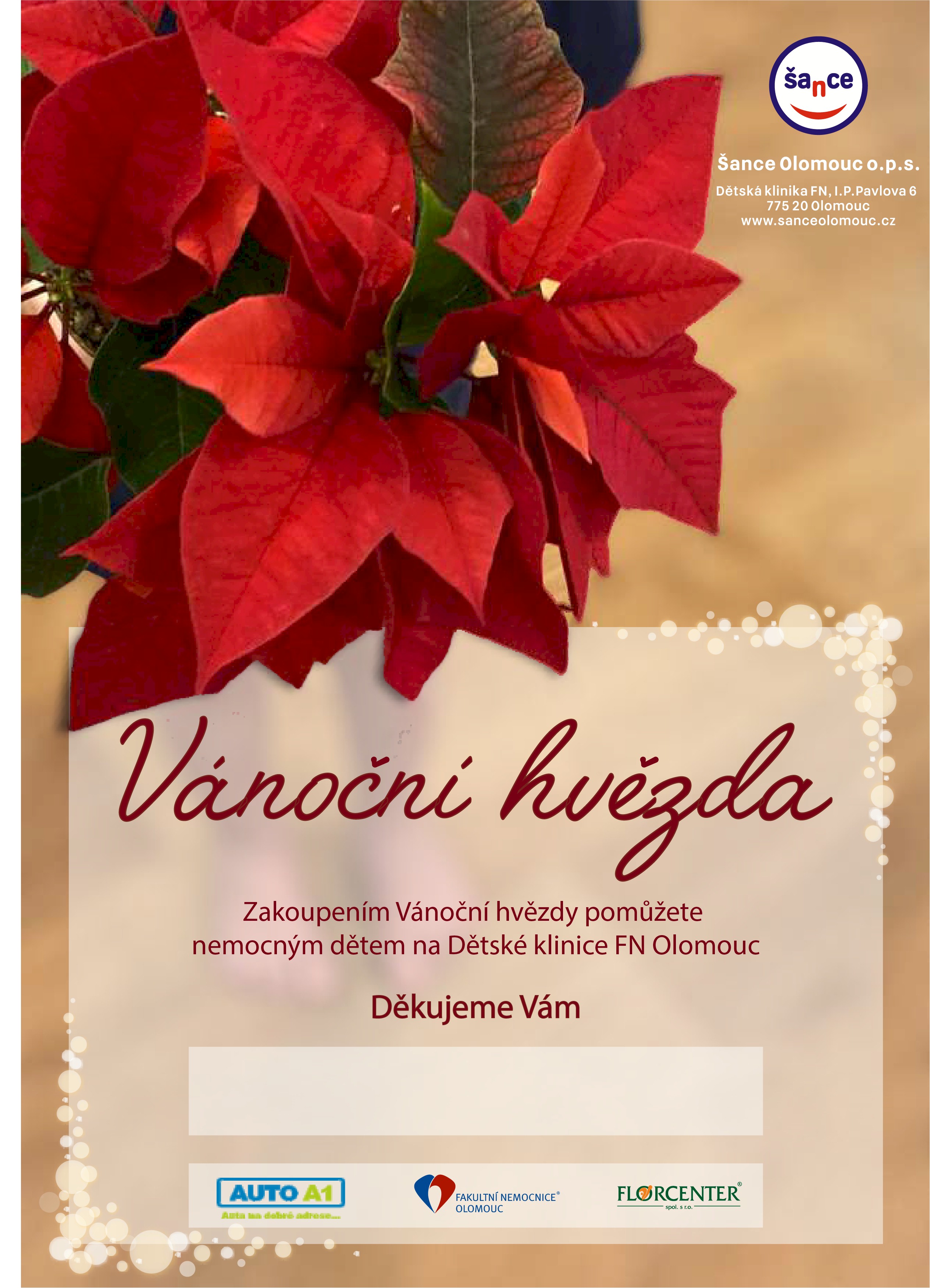 Zakoupením Vánoční hvězdy pomůžete nemocným dětem na Dětské klinice FN Olomouc.