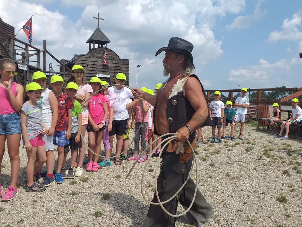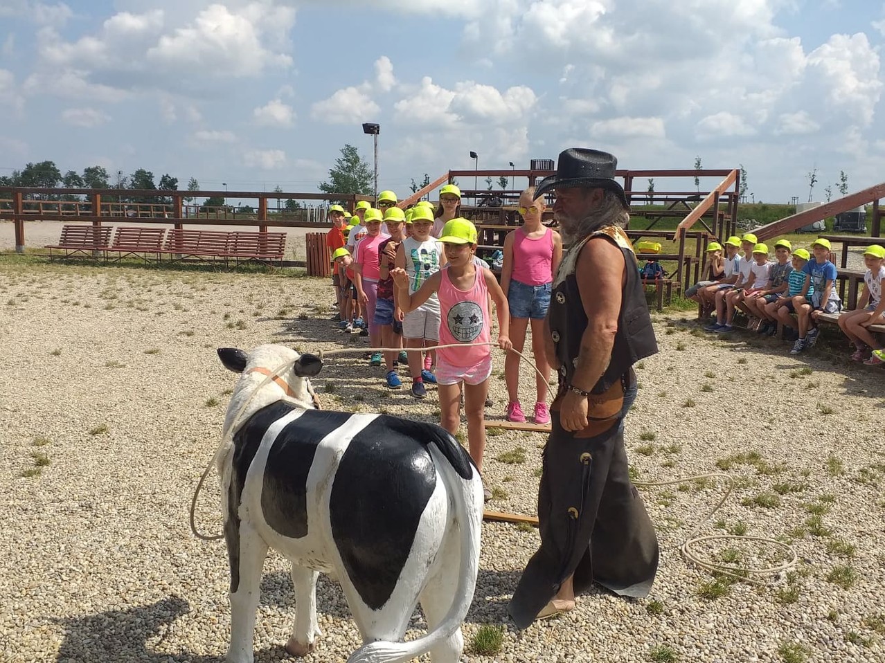 Dne 19. června jsme vyrazili na výlet na ranč v Kostelanech. Místní zaměstnanci měli pro nás nachystaný bohatý program. Od prohlídky stájí, přes střelbu z luku, hod tomahavkem, hod lasem až po velkolepé divadelní vystoupení. Všichni si z výletu odnášeli spoustu zážitků.