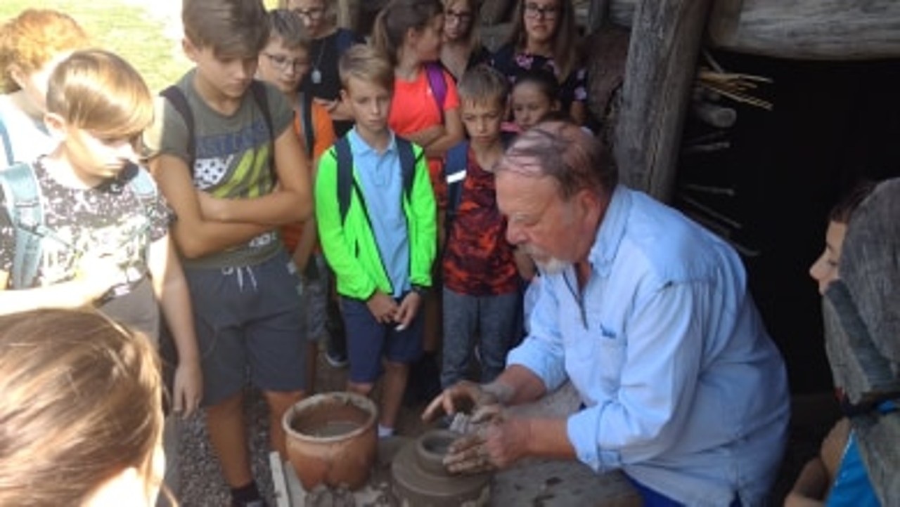Jako první jsme šli na opevnění. Tohle opevnění bylo kdysi dlouhé 420 metrů a táhlo se přes Uh. Hradiště a Staré Město. Pak jsme šli ke studni. Studna je římského původu. Potom následovala klet´, je to domeček na kuřích nožkách. Palác- dlouhá dřevěná halová stavba. V knížecím paláci jsme si mohli podržet zbraně z období velké Moravy. Pak jsme šli střílet z luku. Potom jsme šli k hrnčíři. A nakonec jsme šli na živou vodu. Adéla Martincová
