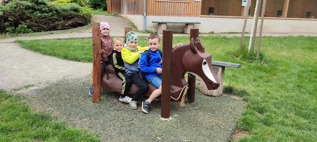 Letošní cíl našeho VÝLETU S RODIČI byl Vyškov. Počasí nám přálo a jízda velkým autobusem rychle ubíhala. Do DinoParku jsme se dopravili zvláštním vláčkem DinoExpresem. Modely dinosaurů v životní velikosti, vydávající zvuky a 4DKino s panoramatickým filmem děti velmi zaujaly. Po krátkém relaxu a občerstvení nás vláček dopravil do vyškovské ZOO, kde jsou domácí i exotická zvířata. Nejvíce děti zaujal Babiččin statek, kde si mohly zvířata i pohladit. Po dobrém obědě a zakoupení suvenýrů jsme se ve zdraví vrátili domů.