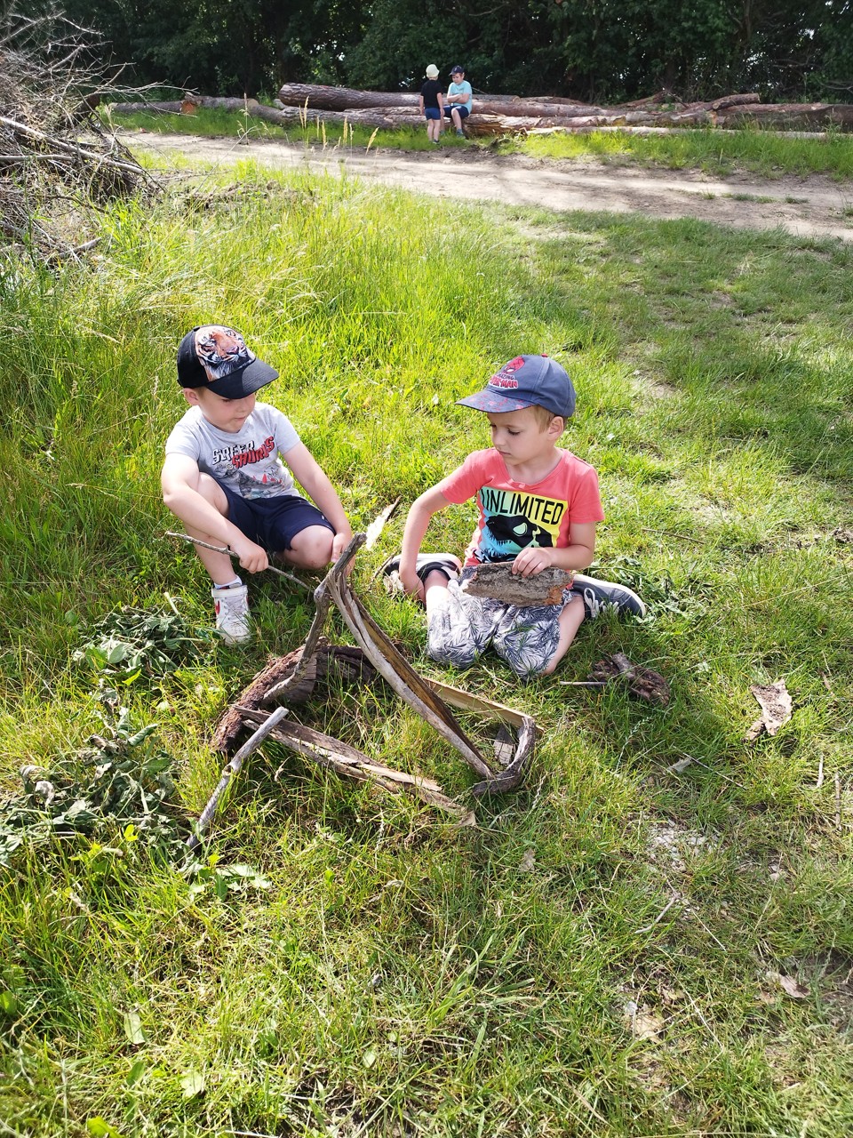 Potom jsme pokračovali opravdu prašnou cestou do blízkého lesa. V lese jsme poznávali nejen stromy, ale i drobné živočichy. Děti se rozdělily do skupinek a z přírodních materiálů postavily domečky pro skřítky. Každý domek byl opravdu originální. Všechny děti byly oceněny sladkou odměnou.