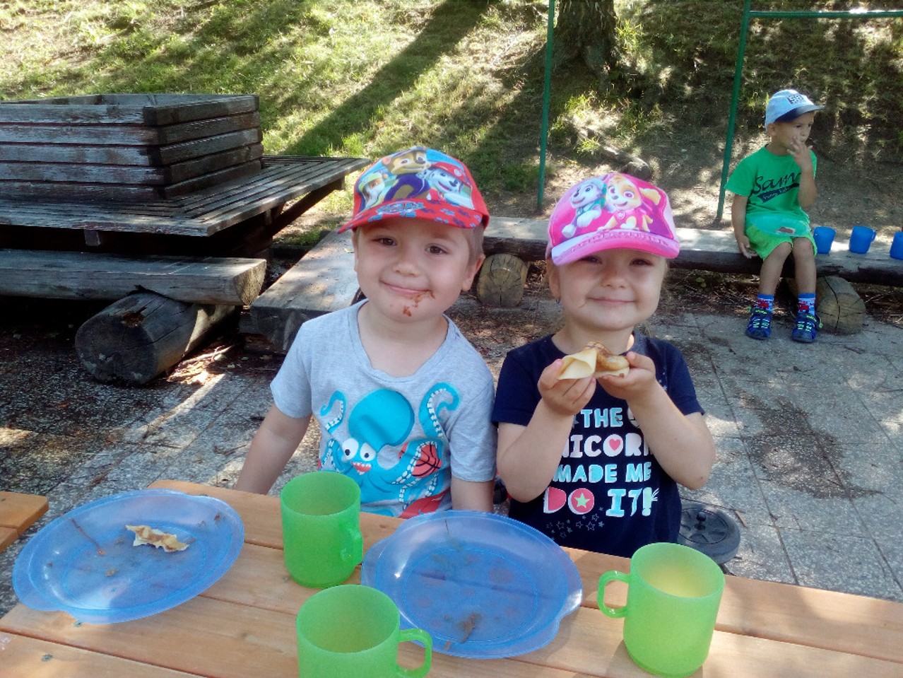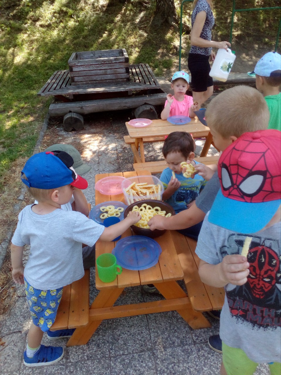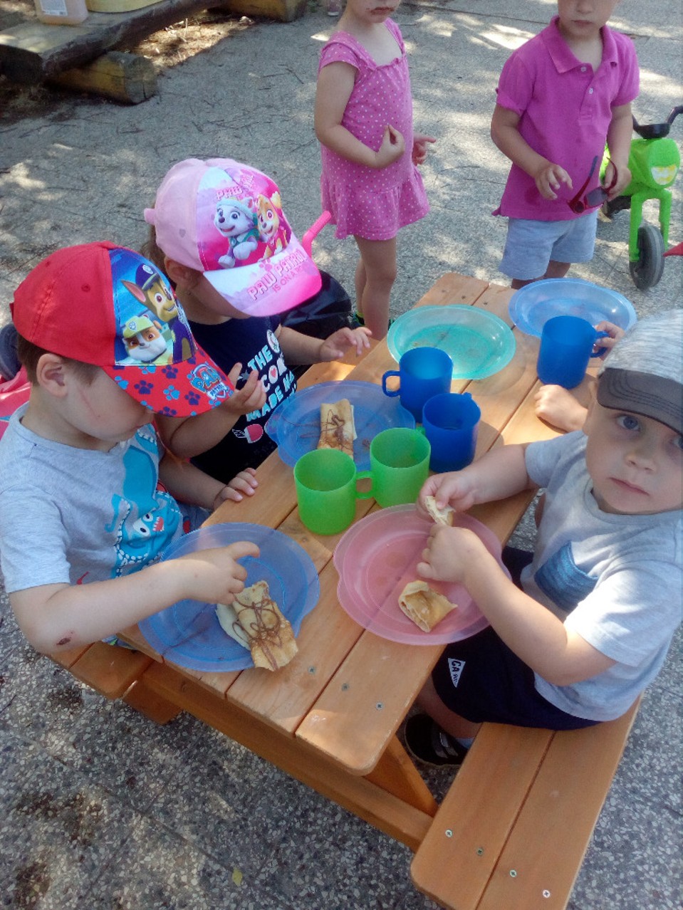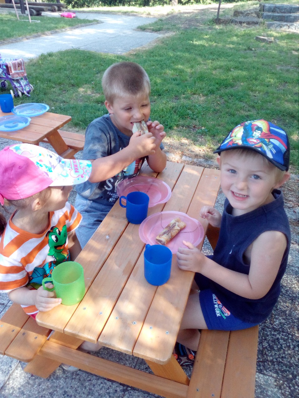 S blížícími se prázdninami jsme si s dětmi ze školky udělali zahradní piknik. Děti si samy nasbíraly kozičky a udělaly si čaj vlastní výroby. Svačinku měly děti vydatnou, byly palačinky s marmeládou, nugetou, nutelou, zalité čokoládou. Pro děti bylo připraveno i pohoštění v podobě mini rautíku (slaného i sladkého). Během dopoledne děti na zahradě mš soutěžily a nechyběla ani diskotéka pod širým nebem. Děti i s učitelkami si dopoledne užily a těšíme se na blížící se prázdniny.
