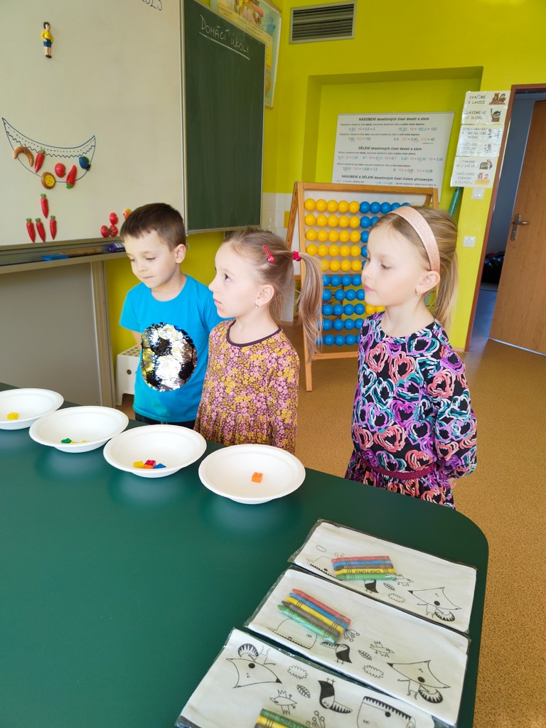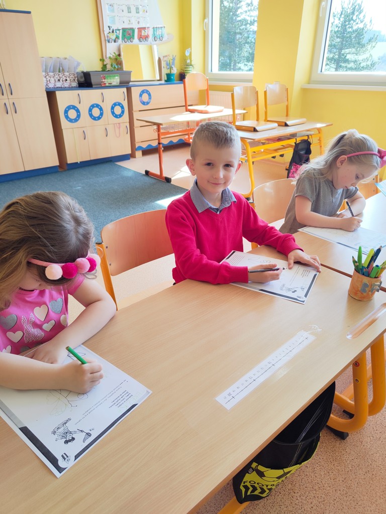 Ve středu 12. dubna proběhl zápis dětí do 1. ročníku ZŠ. K zápisu se dostavilo celkem devět dětí. Čtyři kluci a pět děvčat přišlo v doprovodu svých rodičů ukázat své dovednosti paní učitelkám ve škole. Pěkně a beze strachu se nám všichni představili a řekli, kde bydlí. Paní učitelka Čagánková se u dětí zaměřila na řečové dovednosti a schopnost samostatně pracovat. Každý předškolák měl připravenou nějakou básničku, kterou paní učitelce rád zarecitoval. Paní učitelka Vintrová prověřila děti v sebeobslužnosti, v jemné i hrubé motorice. Nakreslily také postavu a předvedly paní učitelce pohybovou zdatnost. Třetí a zároveň poslední zastavení bylo u paní učitelky Jónové, která se zaměřila na početní dovednosti. Pojmy jako více, méně, čtverec, obdélník, trojúhelník, ale také číselná řada 0 – 10 natrénovaly děti ve školce na výbornou. Zkrátka a dobře, všechny zadané úkoly splnily na výbornou a proto také u každé paní učitelky dostaly odměnu. Děti odcházely spokojené, s úsměvem na tváři a spokojené byly také paní učitelky. Už teď se těšíme na budoucí prvňáčky. Tak v září na viděnou!