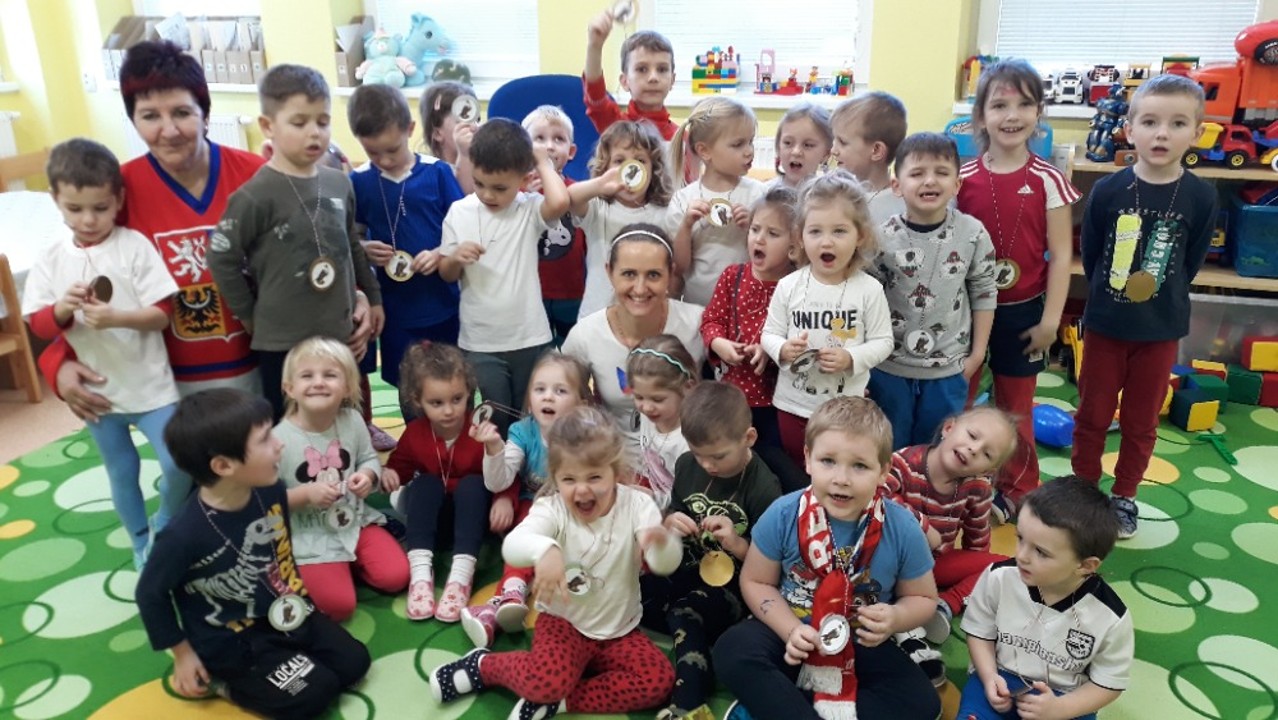Předolympijskou atmosféru si aktivně vychutnávaly děti, které přišly ve čtvrtek 3. února do naší MŠ. Většina z nich nepodcenila přípravy na tento sportovní svátek a vybavila se sportovními dresy v barvách naší národní vlajky. Slavnostní ceremoniál byl zahájen zapálením olympijského ohně, malí sportovci složili olympijský slib, zazněly tóny naší národní hymny. A pak už došlo na samotné sportovní disciplíny. Některé sice lehce vybočovaly ze zažitých zvyklostí, ale s o to větší vervou se jich malí olympionici chopili. Povolen byl dokonce i lehký sladký doping, který pro děti připravily jejich maminky. Vyvrcholením celé akce se stala diskotéka, kde děti zanechaly poslední zbytky svých sil. Všichni si odnášeli domů medaile s vyobrazením sokola, který dětem připomíná tělovýchovný projekt „Cvičíme se Sokolem“, do kterého je naše MŠ už několik let zapojena.