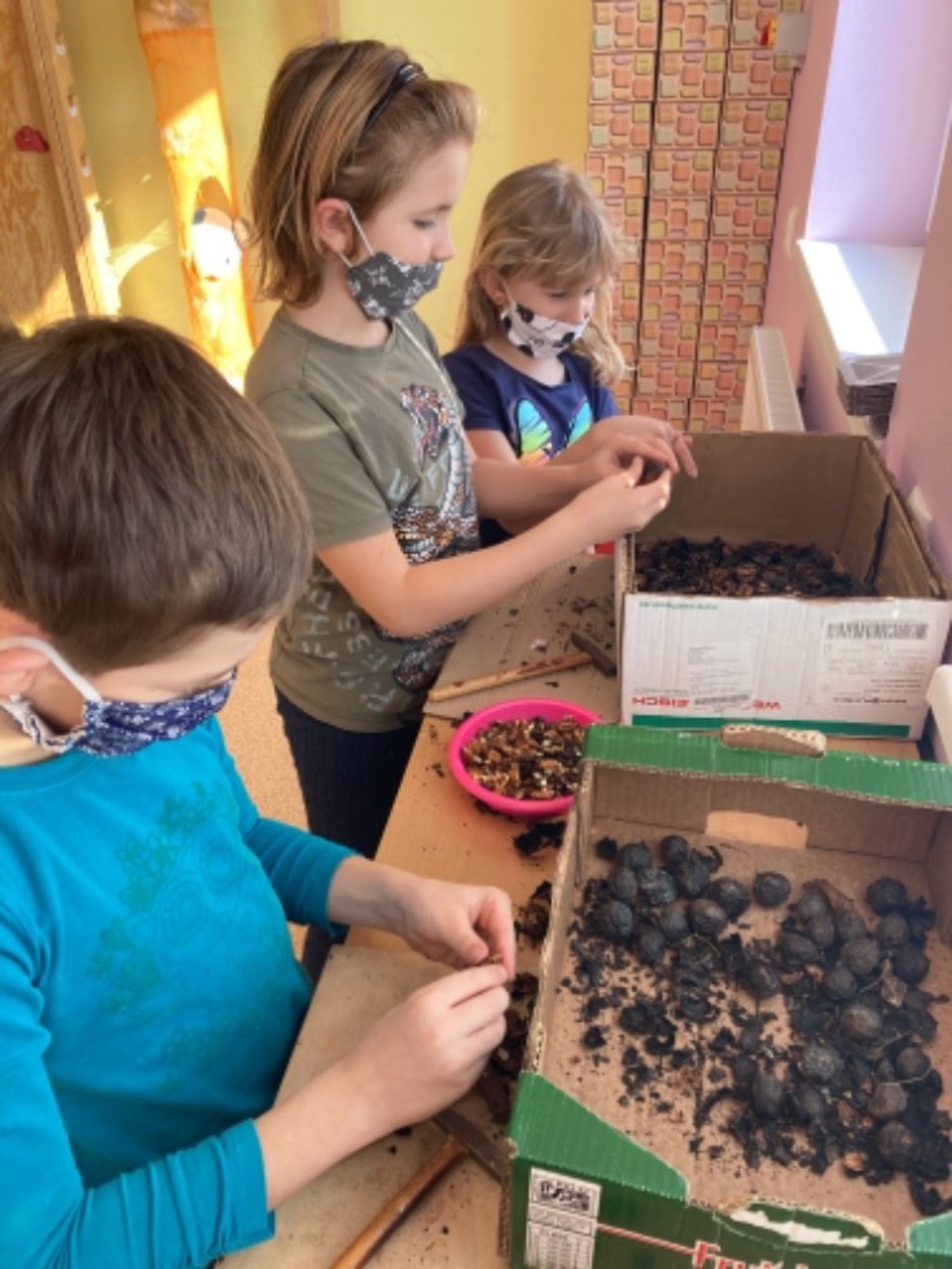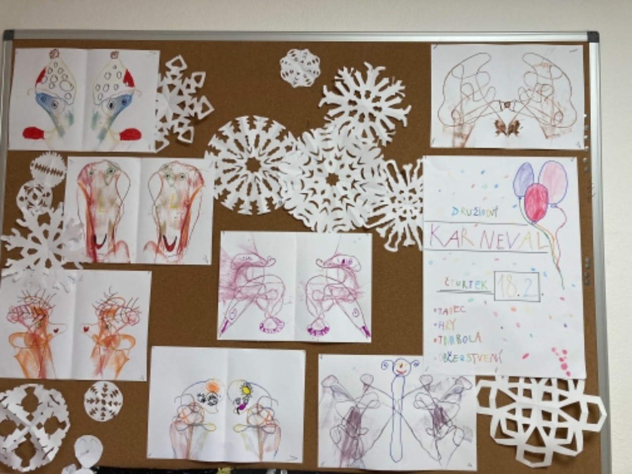 V družině jsme se věnovali pohybovými činnostem, vyráběli jsme krásnou vánoční výzdobu, Ježíšek nám přinesl novou mega stavebnici – kostky, užívali jsme si na sněhu, tvořili jsme ledové kostky, učili jsme se šít, uspořádali jsme si karneval s úkoly, pomáhali jsme školkáčkům s louskáním ořechů a hlavně jsme si hodně hráli.